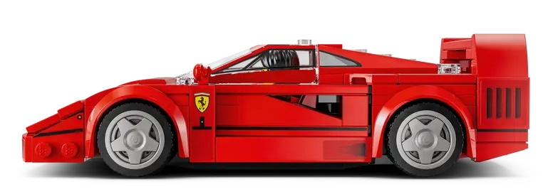 Ferrari имеет характерный для F40 задний спойлер, капот, выхлопные трубы, колесные диски, элементы воздухозаборника и салон с приборной панелью, ручником, рычагом переключения передач, красными сиденьями и рулевым колесом. В набор также входит минифигурка водителя Ferrari, которую дети могут посадить за руль.