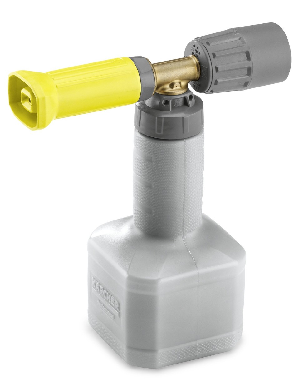 При использовании совместно с чистящим средством RM 838 новой трубки для пенной очистки с баллоном Basic 1 уменьшается расход средства до 50%. Она предназначена для использования с аппаратами высокого давления без серворегулятора Servo Control и с производительностью от 350 до 600 л/ч. Она обеспечивает формирование высококачественной пены, проста в управлении, а прочное латунное основание гарантирует долгий срок службы. Трёхступечатая регулировка концентрации при помощи встроенной заслонки исключает случайное изменение настройки. Прочный и эргономичный баллон для чистящего средства имеет большое отверстие для наполнения, четырехзаходную резьбу для простоты присоединения и дополнительную ручку для захвата на горлышке.