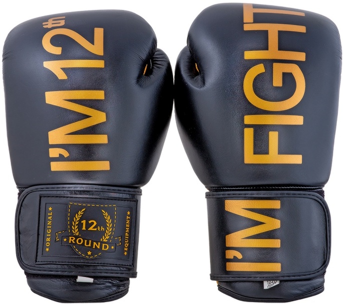 Универсальные боксерские перчатки на липучке «12th Round Black Gold IM Fighter Boxing Gloves» Эта модель представлена новой коллекцией «IM FIGHTER» . Сконструированая по новому модель дает на много больше комфорта , удобства и безопасности . Удлиненная модель перчаток и широкая липучка плотно прижимает и фиксирует перчатку к руке. Дополнительная набивка с внутренней стороны перчатки делает хват наиболее удобным . Закрученность перчатки в передней части кулака придает удобство при тренировках а прижатый большой палец к боковой части кисти дает наибольшую безопасность при не точных и скользящих ударах боксера. Так же правильно подобранная толщина набивки в передней части перчаток делают их идеальными как при работе в парах так и в работе на лапах и боксерских снарядах . Дополнительно в этой модели боксерских перчаток добавлен размер 18 унций . Cовершено обновленный дизайн делают их привлекательными при выборе боксерской экипировки.