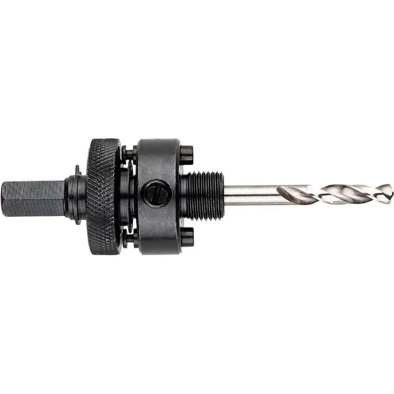 Биметаллический адаптер для сверла GRAPHITE (арт. 57H940) предназначен для сверления отверстий диаметром более 30 мм. Система выдвижных крепежных штифтов предотвращает застревание сверла на адаптере, что позволяет легко заменить его на сверло другого размера. В комплект входит запасное направляющее сверло, но его можно приобрести отдельно.