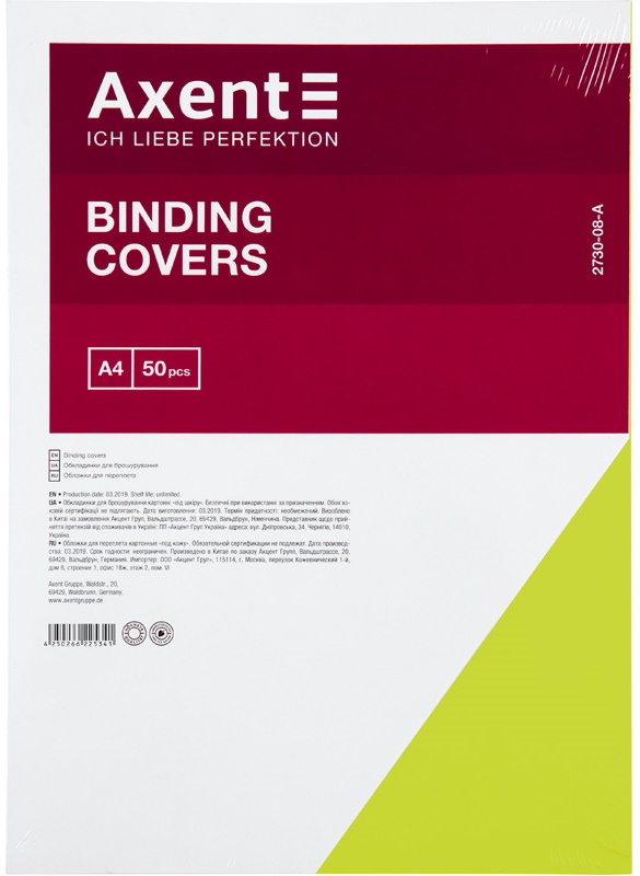 Обложка для переплета Axent A4 50pcs Yellow 2730-08-A фото №1 — интернет-магазин Desire.md