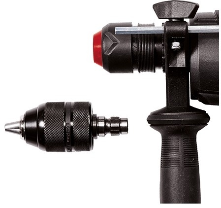 Перфоратор Einhell TE-RH 950 5F сочетает в себе пять функций: сверление на первой или второй скорости, сверление с ударом, долбление с фиксацией и без нее, а также завинчивание. Двухскоростной редуктор позволяет выбрать необходимую скорость для сверления отверстий различного диаметра в древесине или металле. Пневматический ударный механизм обеспечивает очень хорошую производительность. Удобный переключатель режимов позволит быстро настроить необходимый режим работы. Рукоятки с покрытием Softgrip для удобного хвата инструмента. Кнопка включения с возможностью предварительной установкой скорости вращения оснастки и возможностью блокировки для длительных работ. Перфоратор оснащен Быстросъёмный патрон SDS-Plus одним движением руки можно поменять на кулачковый БЗП патрон (идет в комплекте). Перфоратор поставляется в кейсе для транспортировки и хранения E-Box Basic.