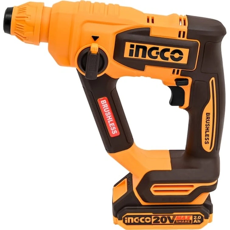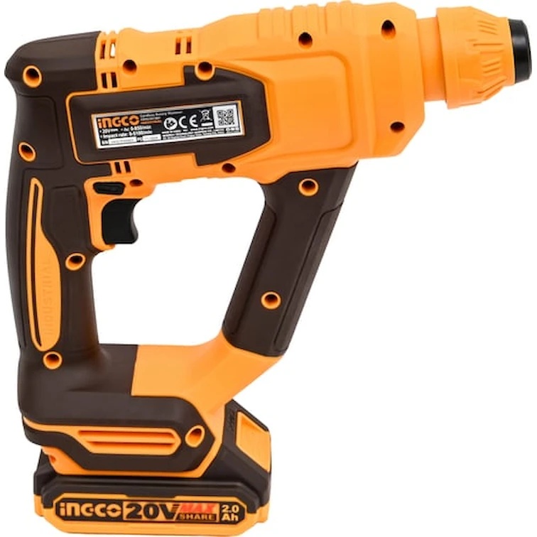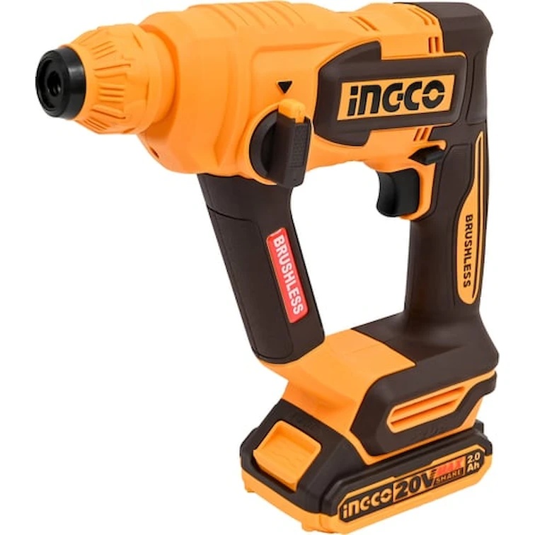 Аккумуляторный перфоратор INGCO SUPER 20В BL 1.8Дж, 1хАКБ 2Ач и ЗУ CRHLI201881 предназначен для сверления отверстий в бетоне, кирпиче и природном камне. Он также пригоден для сверления отверстий в древесине, металле, керамике и синтетических материалах.