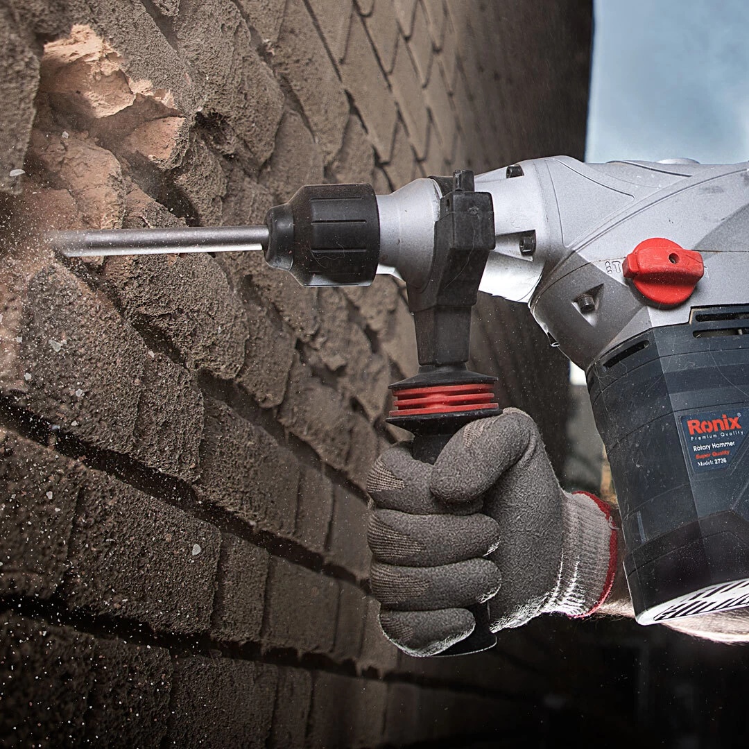 Перфоратор Ronix 2736 оснащен прочным, надежным двигателем, который обеспечивает реальную мощность 1500 Вт. Этот двигатель идеально подходит для всех видов промышленных работ. Он позволяет использовать три различных режима: сверление, долбление и сверление с долблением.