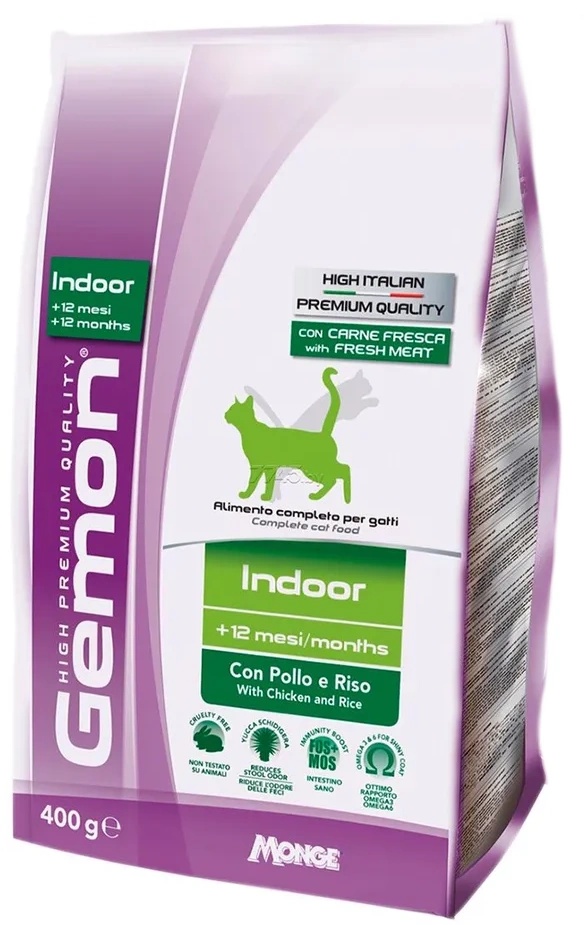 GEMON DRY CAT INDOOR with Chicken and Rice – п олноценный корм с курицей для взрослых кошек в возрасте от 1 года, живущих преимущественно в помещении. Оптимальное соотношение между омега-3 и омега-6 обеспечивает эффективную поддержку в борьбе с аллергическими реакциями. Также обогащен юккой шидигерой, которая помогает уменьшить запах фекалий.