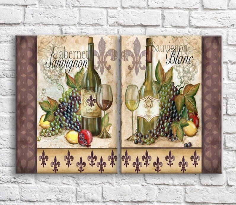 Картина ArtPoster Wine and grapes on the background of patterns (3478784)