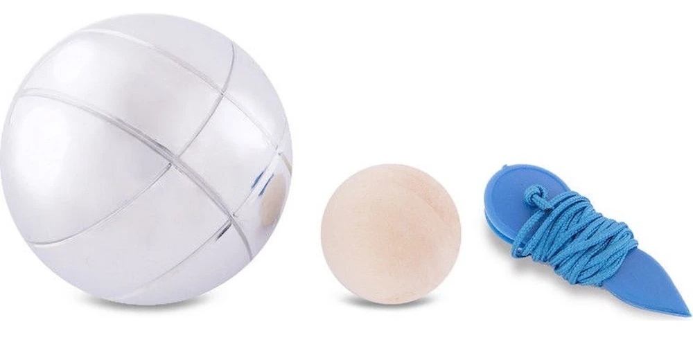 Игра представляет собой набор из трёх стальных шаров, которые используются для соревнований и развлечений. Шары имеют специальную форму, обеспечивающую точность и стабильность при броске. В комплект входит также небольшой деревянный шарик, который служит мишенью. Стальные шары обладают определённым весом и размером, чтобы обеспечить необходимое сопротивление и хороший баланс при катании по поверхности. Их обработанная поверхность обеспечивает надёжное сцепление с мягкими игровыми площадками, делая процесс игры более увлекательным.