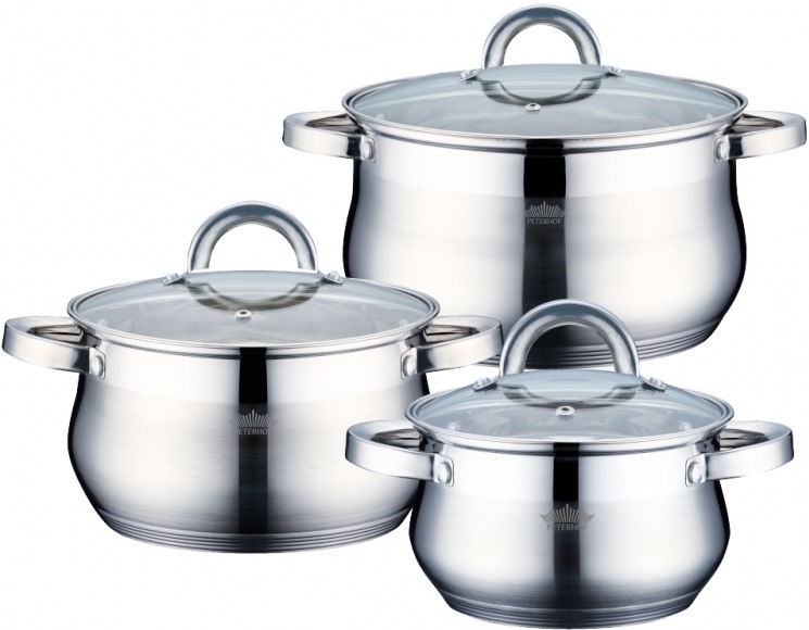 Набор кухонной посуды из нержавеющей стали включает 6 предметов: