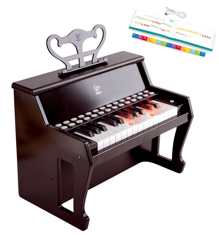 Это электрическое пианино с 25 клавишами — прекрасный способ начать свое музыкальное путешествие. Следуйте за светящимися клавишами, чтобы научиться играть! Затем вы можете выбрать свой собственный инструмент и играть под одну из шести стилизованных мелодий и восьми барабанных ударов.
