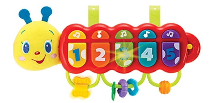 Пианино Caterpillar - очень забавная игрушка для малышей. Включает 2 режима: песни и музыкальные ноты. Игрушка с разной фактурой, скользящими кольцами и бусинами. Он легко крепится к кроватке или коляске.