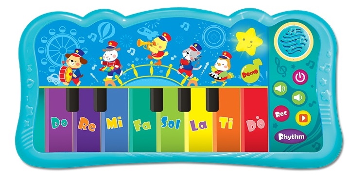 8 музыкальных клавиш, включающих разные звуки: 5 инструментов и 4 животных. Вы даже можете записать свою собственную песню, а затем воспроизвести ее.
