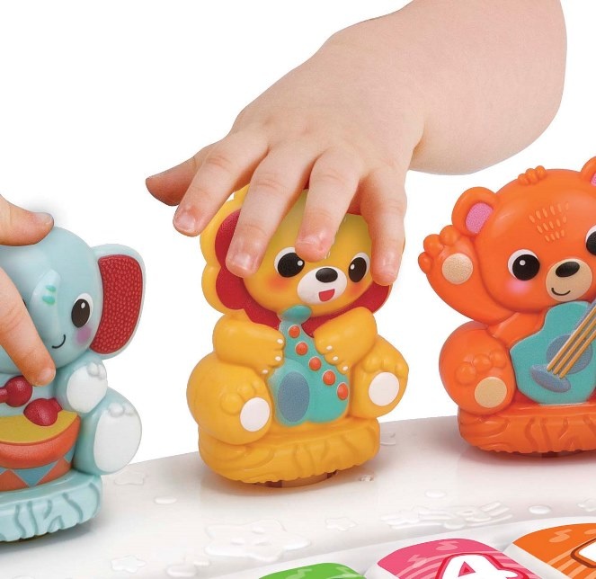 Нажимайте на животных, чтобы услышать веселые звуки, а мигающий микрофон подарит вам веселую мелодию.