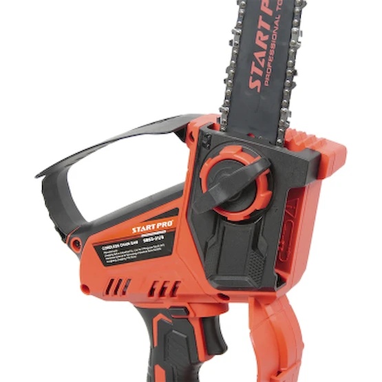 Start Pro SBS3-21/8 — это компактная аккумуляторная цепная мини-пила (сучкорез), предназначенная для обрезки веток, формирования крон деревьев и распиловки небольших дров. Модель оснащена бесщеточным двигателем и системой автоматической смазки цепи.