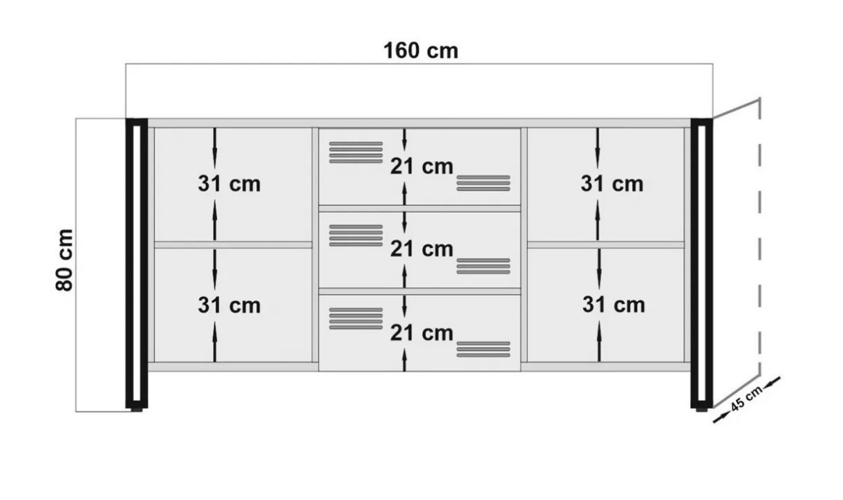 Консоль легко крепится к стене, обеспечивая устойчивость и спокойствие. Габариты 160 см в ширину, 80 см в высоту и 45 см в глубину делают её отличным решением для любой комнаты.