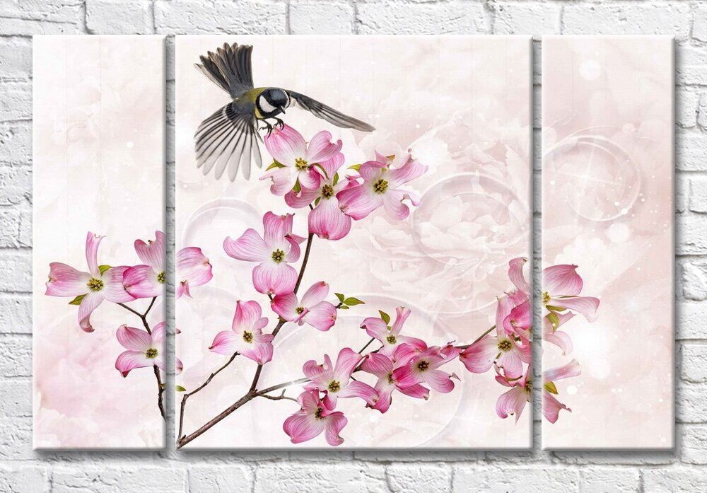 Картина Magic Color Pink Flower Branch & Tit (3565170)