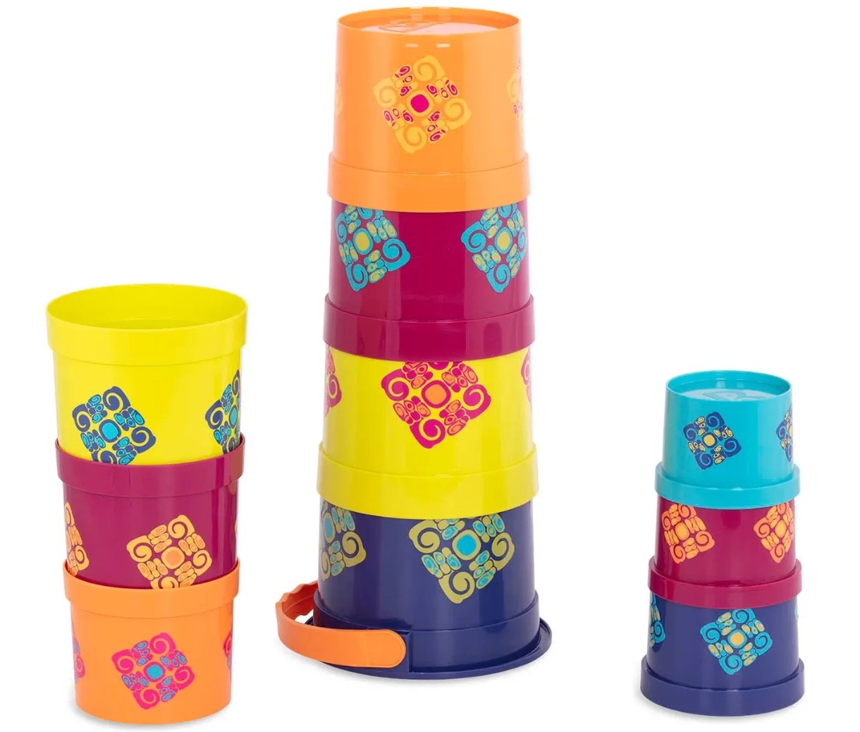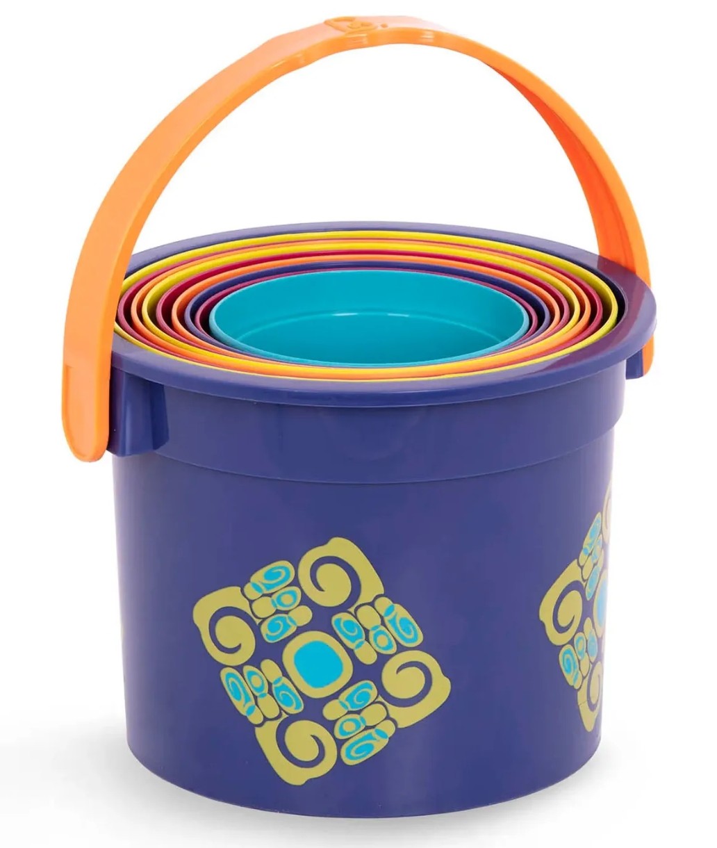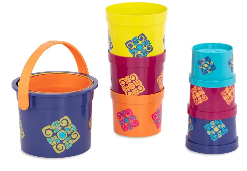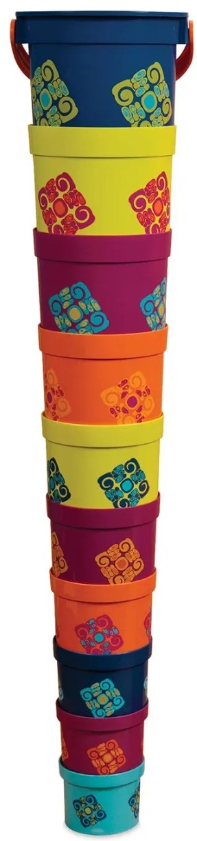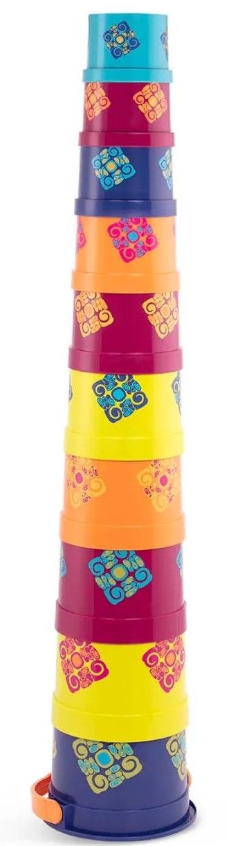 Стройте, собирайте пирамиды из пластиковых стаканчиков Bazillion Buckets от Battat! Этот игровой набор состоит из 9 красочных стаканчиков разных размеров и одного ведерка с ручкой, в котором они все хранятся. С ними можно поплескаться в ванне или взять с собой на пляж. Игрушки знакомят малышей с понятиями размеров, последовательностей, цветами, способствуют развитию мелкой моторики и зрительно-моторной координации.