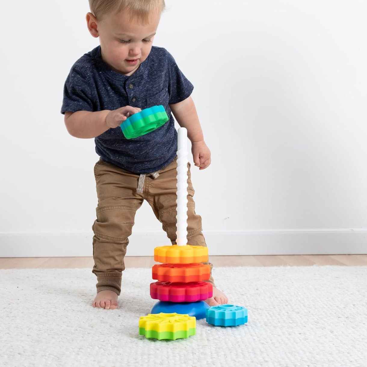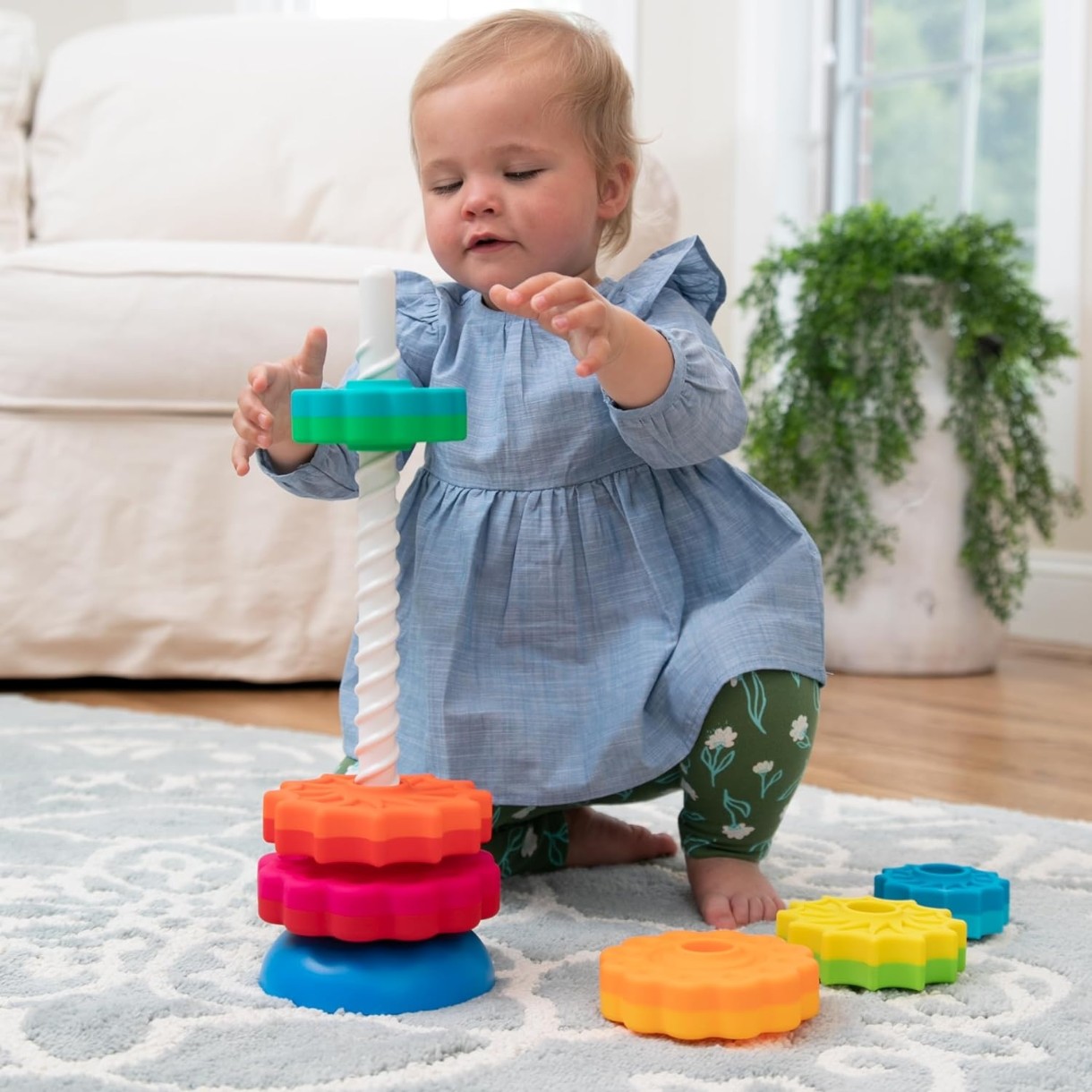 Игровая башня из шестеренок «Сортируй и вращай» — Это игрушка для сортировки, которая буквально закручивает удовольствие! Это логическая игрушка для сортировки и скручивания, предоставляющая множество способов игры и способствующая всестороннему развитию вашего ребенка. Сбросьте яркие диски на витую спиральную ось и смотрите с восхищением, как они быстро и плавно вращаются, пока не усядутся на двустороннее основание.