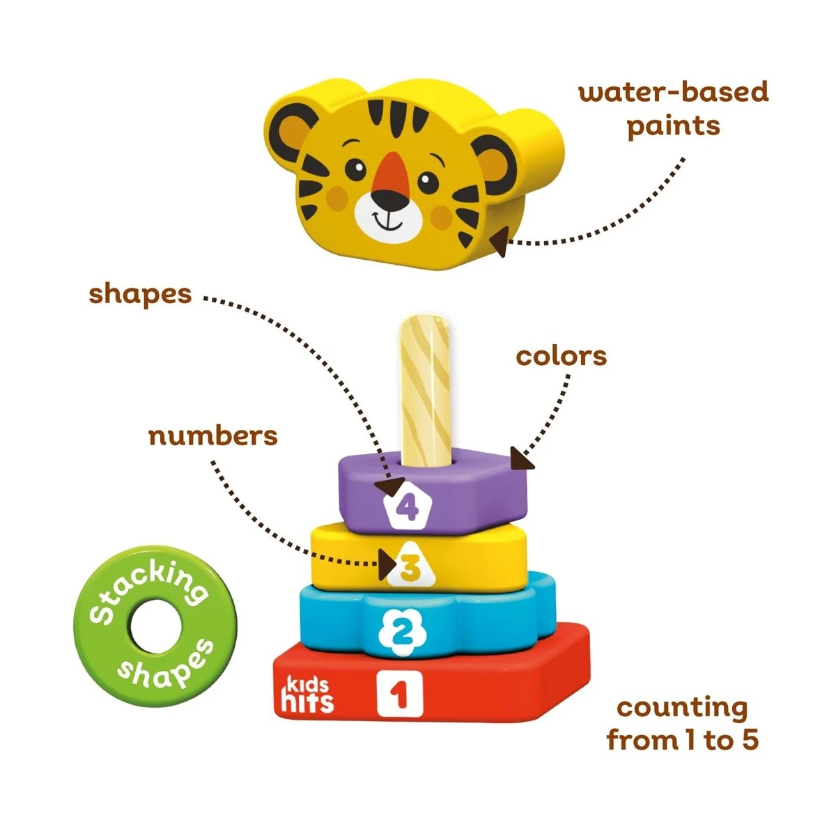 Деревянная пирамида Kids Hits Тигр — это образовательная игрушка, идеально подходящая для развития мелкой моторики и логического мышления у детей. Изготовленная из качественного дерева, она помогает изучать формы и цвета, подходит для детей в возрасте от 1 до 3 лет.