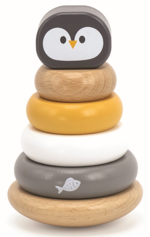 Все элементы крупные, гладкие, приятные на ощупь. Благодаря закругленной деревянной подставке пирамидка-неваляшка PolarB “Пингвин” может качаться из стороны в сторону.