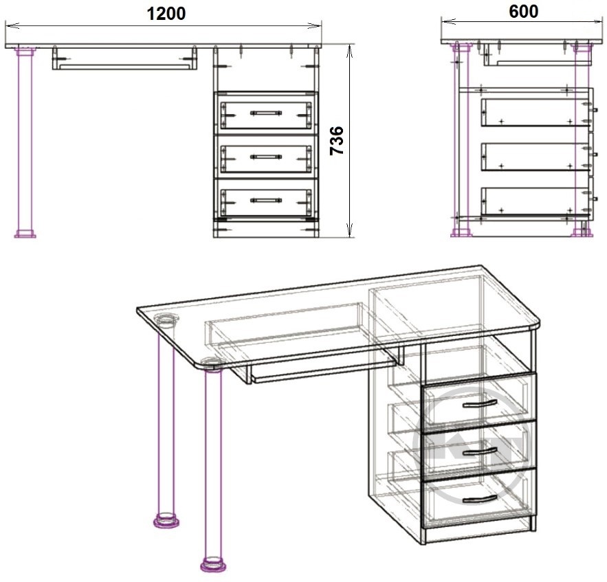 Письменный стол Компанит СКМ-9 Дуб Сонома