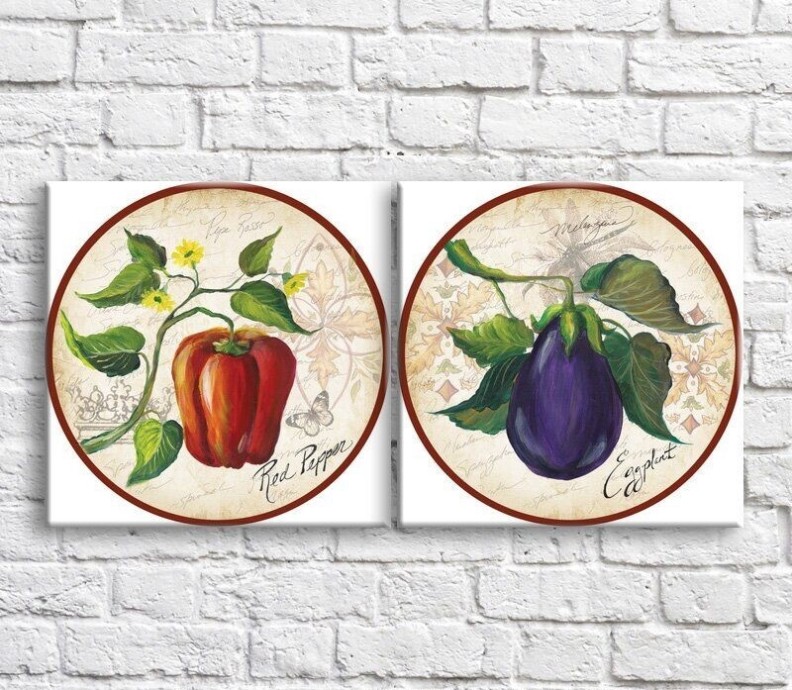 Картина ArtPoster Red pepper and eggplant on a background of patterns (3478746)