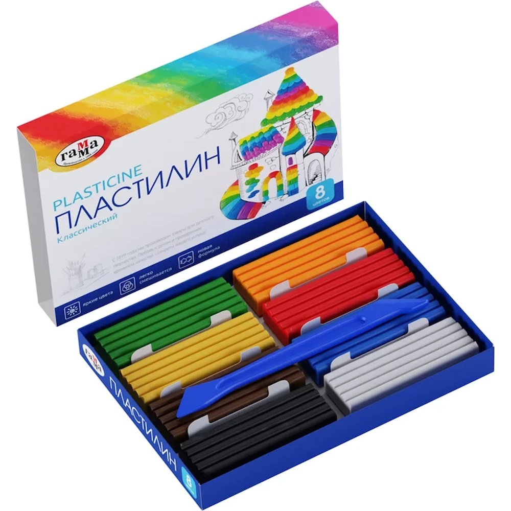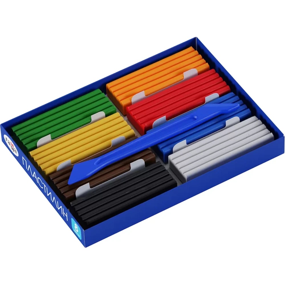 Набор цветного пластилина из 8 цветов. Яркие и сочные цвета. Не липнет к рукам, не оставляет жирных пятен. Цвета легко смешиваются. В комплекте идет пластиковый стек. Упакован в картонную коробочку.