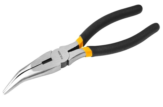 Длинногубцы TOLSEN изогнутые 200 мм (арт. 10284) — инструмент из хромванадиевой стали с индукционной закалкой рабочих кромок для повышенной прочности и износостойкости. Изогнутая форма (обычно 45° или 90°) обеспечивает доступ к труднодоступным местам и удобство при работе с мелкими деталями, проволокой или проводами. Двухкомпонентные обливные рукоятки гарантируют комфортный хват и защиту от скольжения.