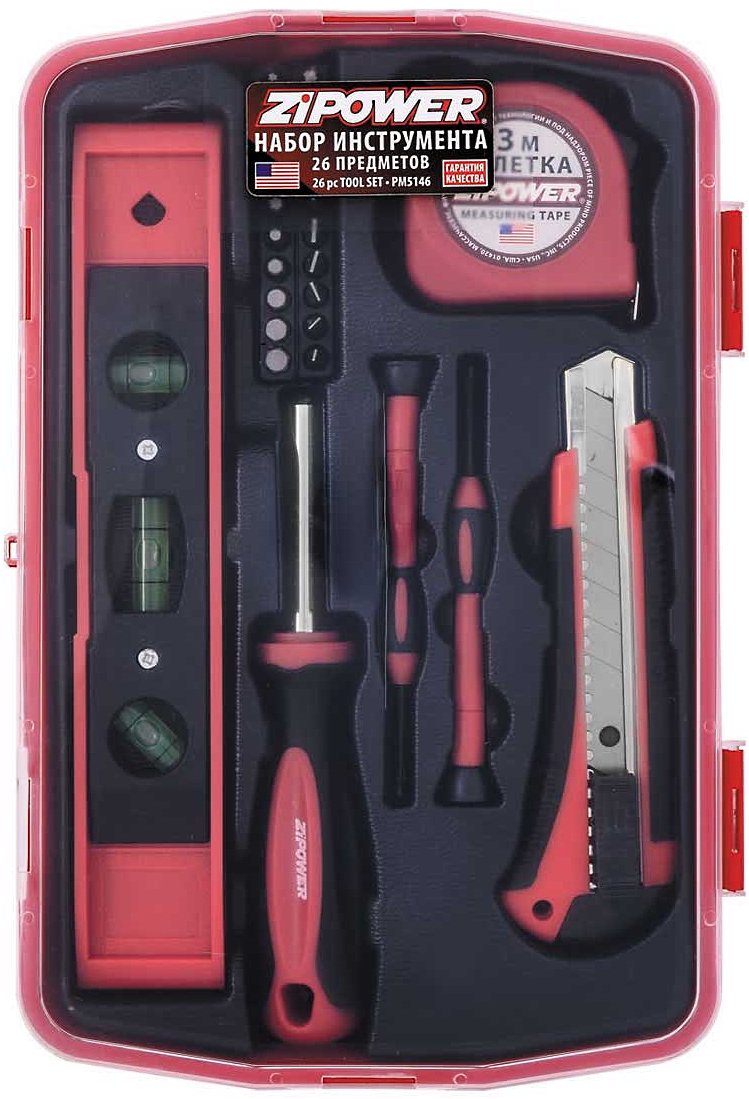 Набор инструмента бытовой 26 предметов (прозрачный кейс), (отвертка для точной механики, канцелярский нож со сменными лезвиями, рулетка, отверточная ручка с магнитным битодержателем, отверточные биты, строительный уровень), из высококачественной хромованадиевой стали, рукоятки из ударопрочного пластика.