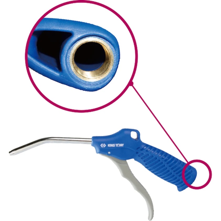 Продувочный пистолет KING TONY 79900-04 служит для быстрого и аккуратного удаления пыли, мусора и прочих загрязнений из щелей, сквозных отверстий, полостей конструкций, с деталей или поверхности стола. Тонкое сопло длиной 100 мм обеспечивает удобную работу в труднодоступных местах. Модель потребляет 350 литров воздуха в минуту.