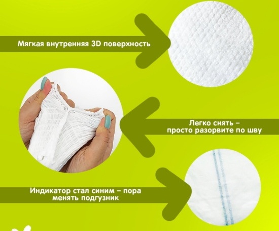 Подгузники спокойно выдерживают всю ночь до утра. Равномерное впитывание по всей поверхности внутреннего слоя позволяет малышу чувствовать себя комфортно в подгузниках до 12 часов.