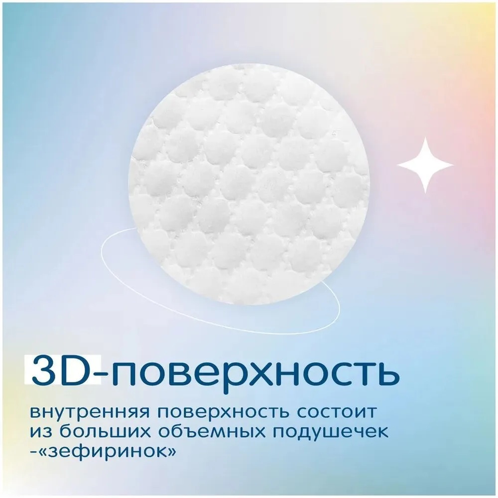 Объемная текстура поверхности бережно контактирует с чувствительной кожей малыша, не вызывая излишнего трения и раздражений. Уникальная система впитывания. Широкий абсорбирующий слой подгузника и высокотехнологичный абсорбент обеспечивают мгновенное поглощение влаги. Жидкость распределяется равномерно по всей поверхности. Инновационный абсорбент не комкуется и не разбухает при намокании. Защитные внутренние манжеты с вшитым непромокаемым бортиком вокруг ножек гарантируют надежную защиту от протекания как во время активных игр, так и ночью. Трусики Joonies Marshmallow обладают высокой воздухопроницаемостью и позволяют коже дышать, исключая риск появления опрелостей и парникового эффекта. Мягкий эластичный поясок нежно укутывает животик малыша и надежно фиксирует трусики. Кроме того, подгузники-трусики Joonies Marshmallow невероятно удобны в использовании. Их легко надевать и снимать, что особенно важно в период активности ребенка. Просто вставьте руки в отверстия для ног снизу, проденьте ножки по очереди и малыш готов к новым приключениям. А индикатор намокания подскажет, когда необходимо сменить подгузник. Разорвите использованные трусики по боковым швам и сверните в рулетик. Специальная лента для утилизации на задней части поможет закрепить края свернутого подгузника.