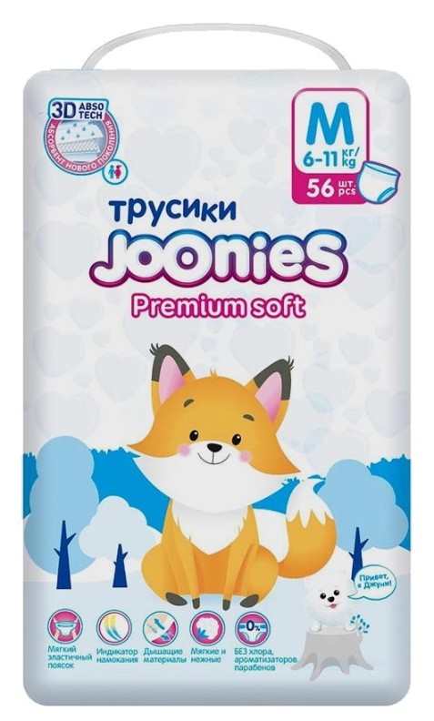 Подгузники-трусики Joonies Premium Soft M 56pcs