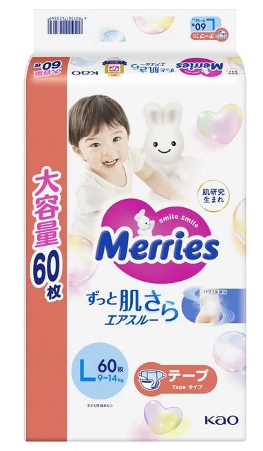Подгузники Merries изготовлены из очень мягких материалов. Подгузники не образуют жестких краев и складок, которые могут раздражать кожу ребенка.