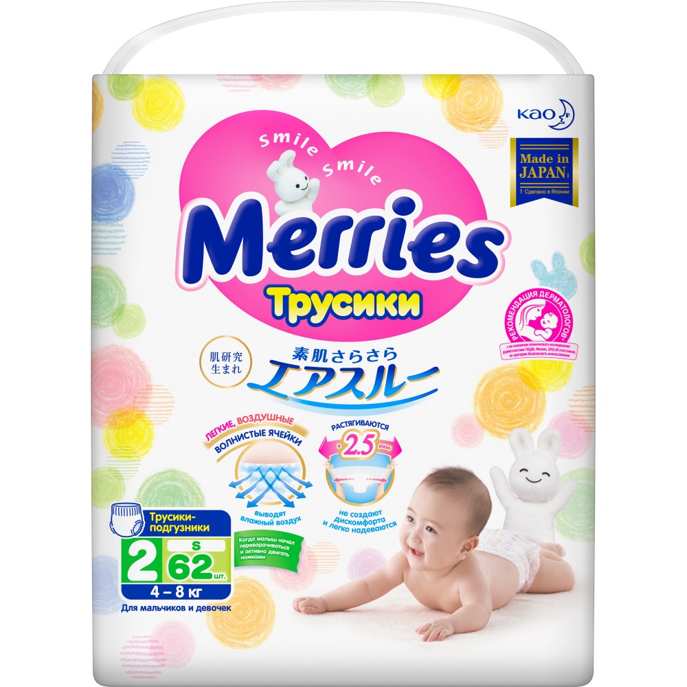 Подгузники-трусики Merries S 62pcs