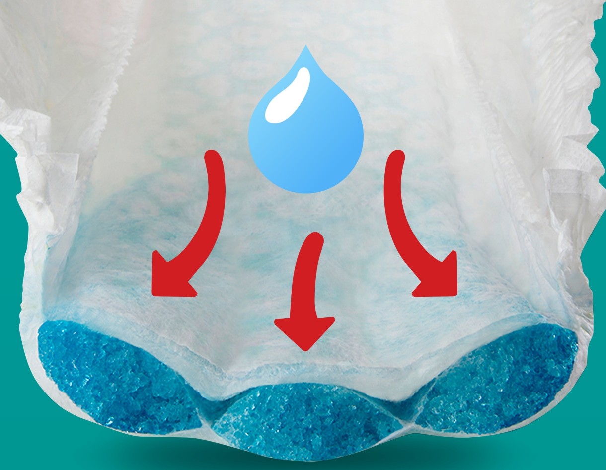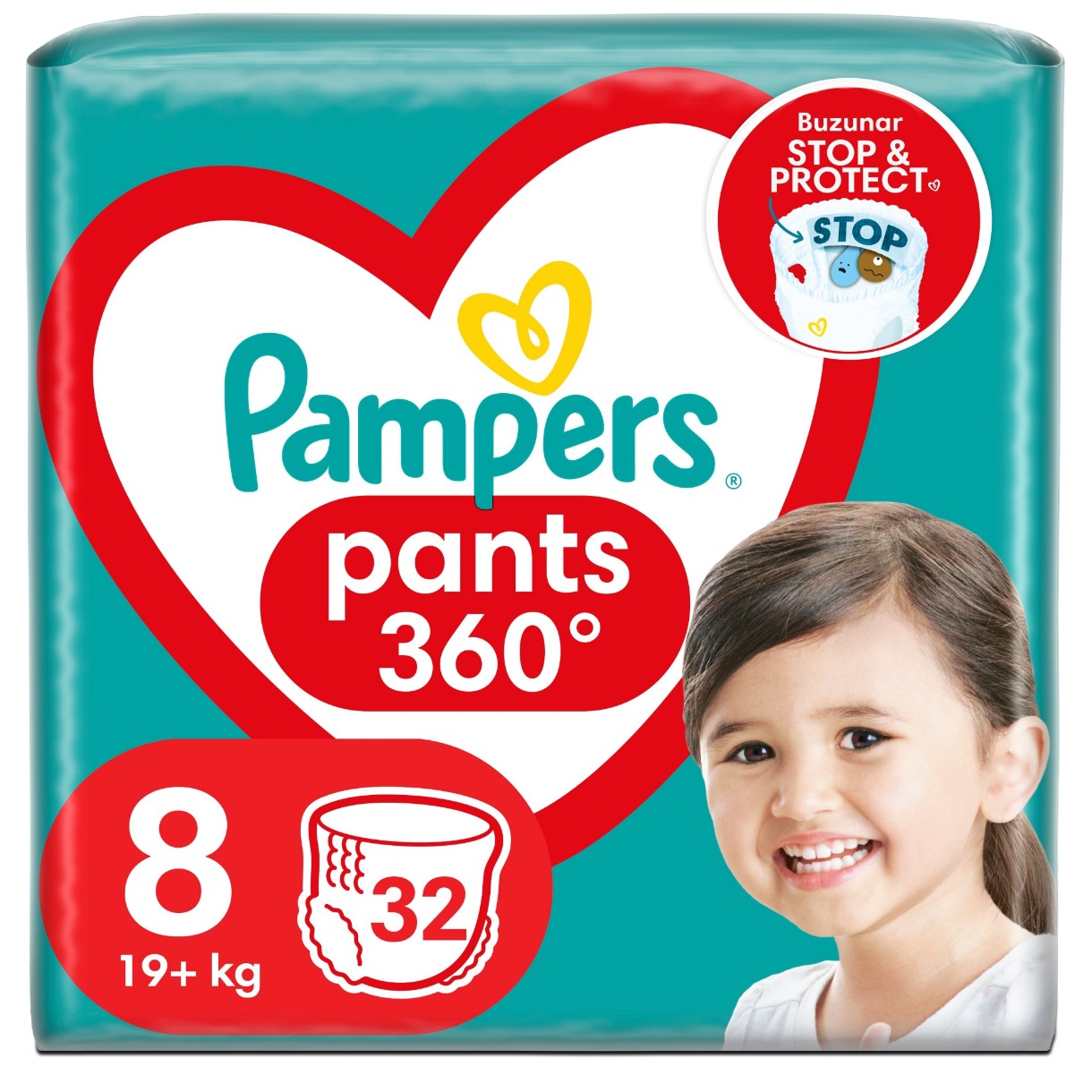 Подгузники Pampers Pants имеют инновационный карман STOP & PROTECT POCKET, который в сочетании с подгонкой подгузников на 360° обеспечивает защиту от протекания до 12 часов.