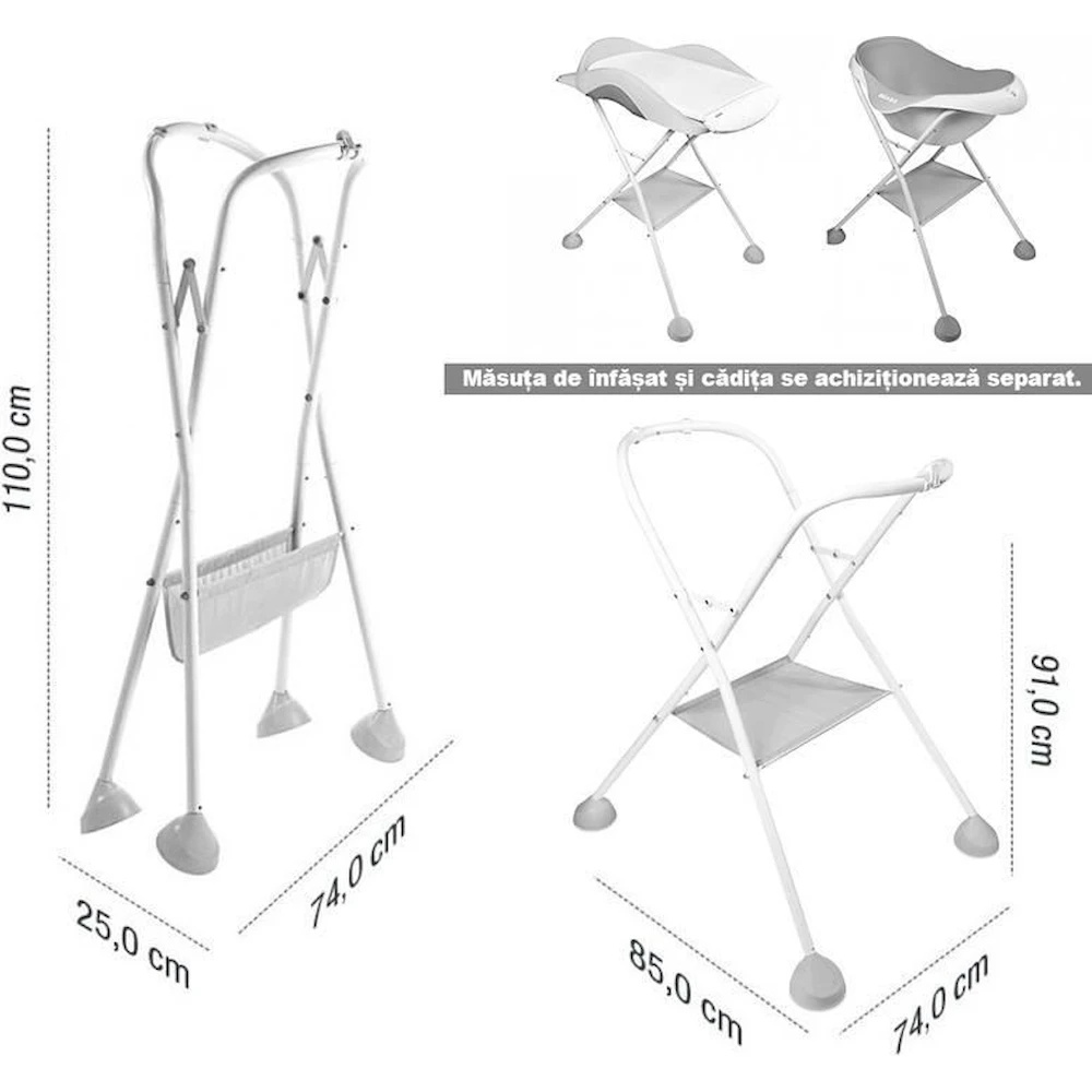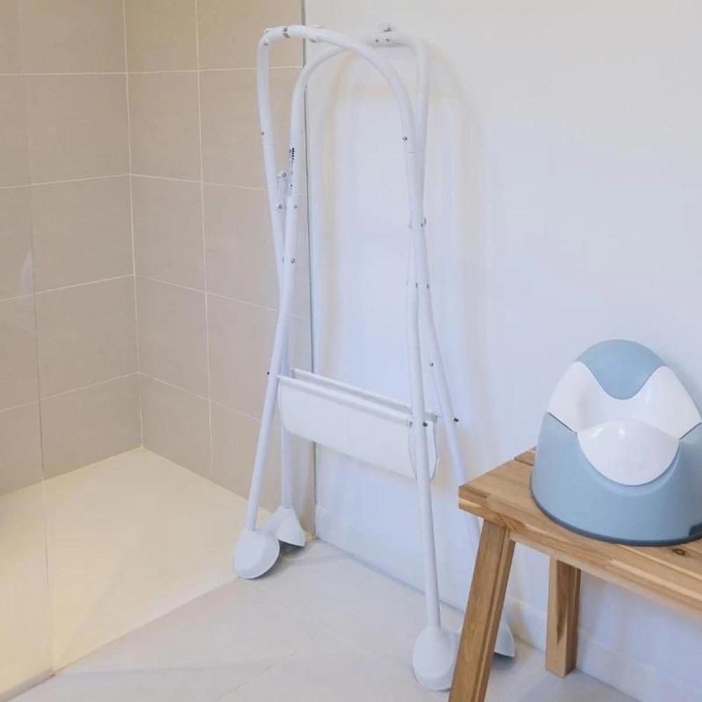 Практичная и удобная, она снижает нагрузку на спину родителей и делает ежедневный уход более комфортным. Благодаря системе фиксации установка и снятие ванночки или пеленального столика выполняются быстро, легко и безопасно. Подставка легко складывается и разбирается, что позволяет экономить место. Также она оснащена тканевым отделением для хранения туалетных принадлежностей или аксессуаров для пеленания.