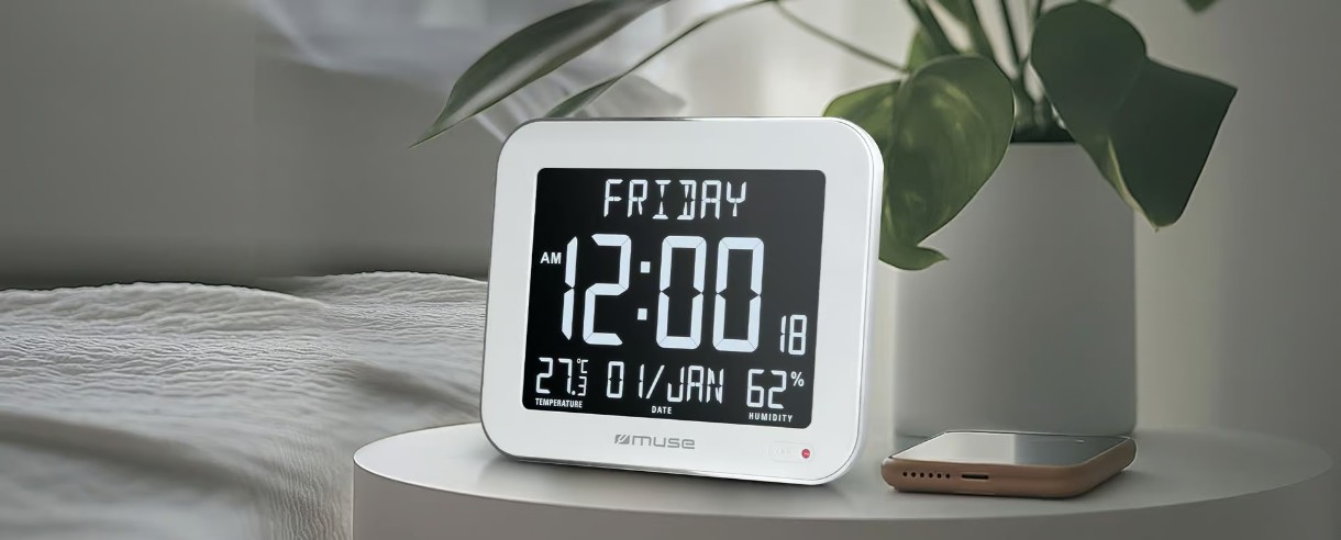 Часы выполнены в современном лаконичном дизайне с цифровым ЖК-дисплеем, который обеспечивает четкое отображение информации даже при слабом освещении. Устройство легко вписывается в любой интерьер — от классического до ультрасовременного стиля хай-тек.