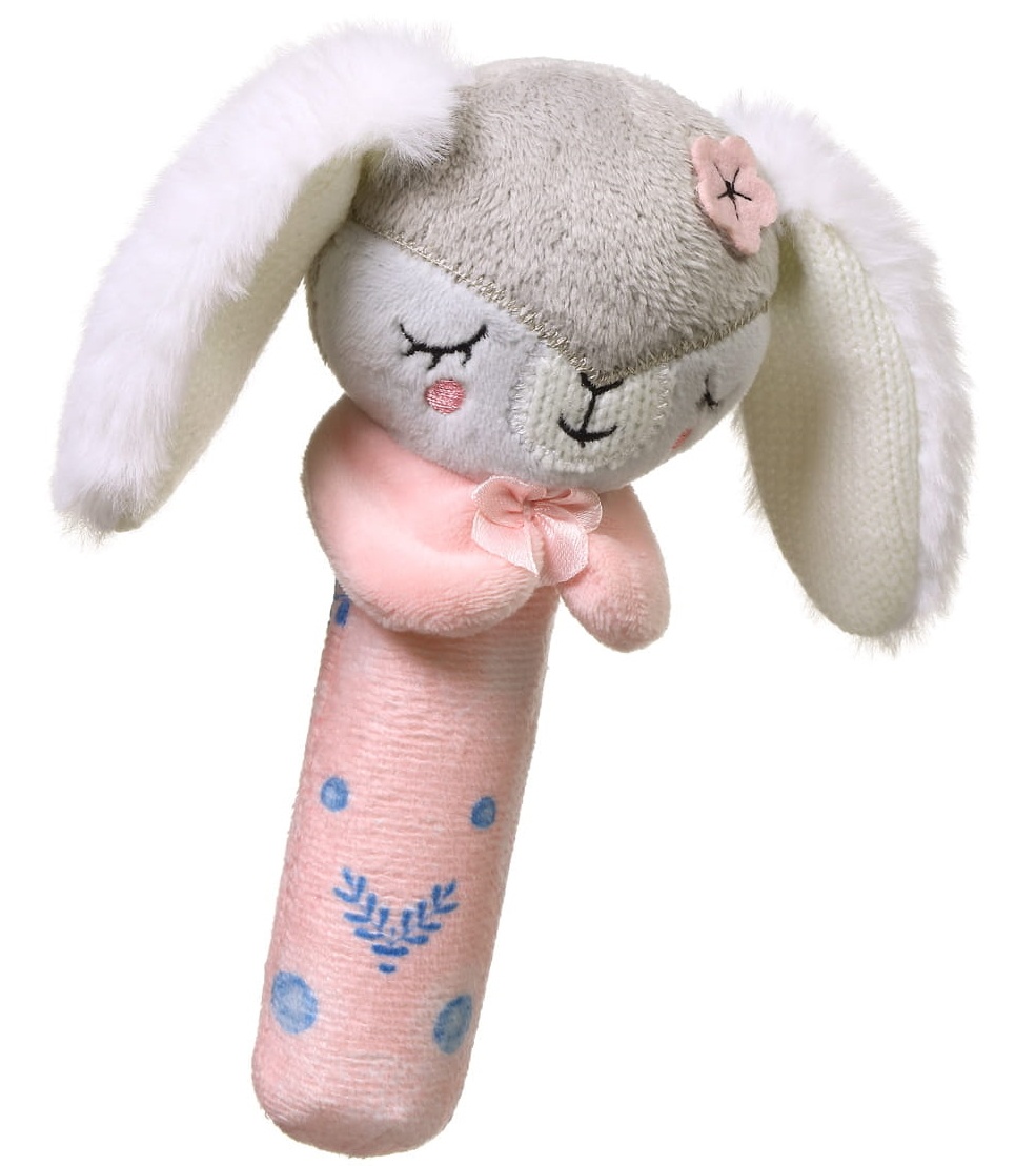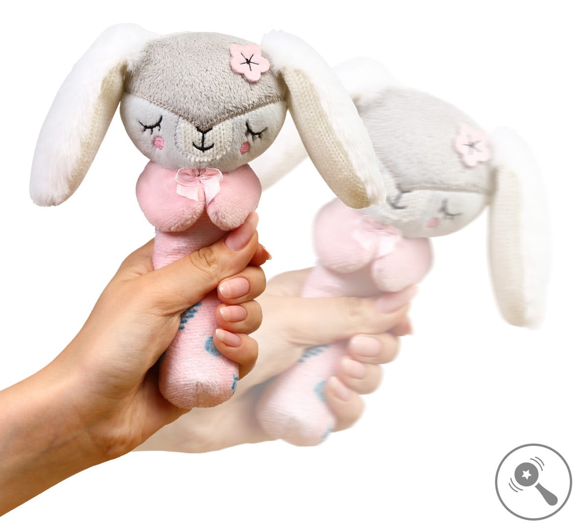 Пищалка-погремушка в форме кролика - это мягкая интерактивная игрушка.