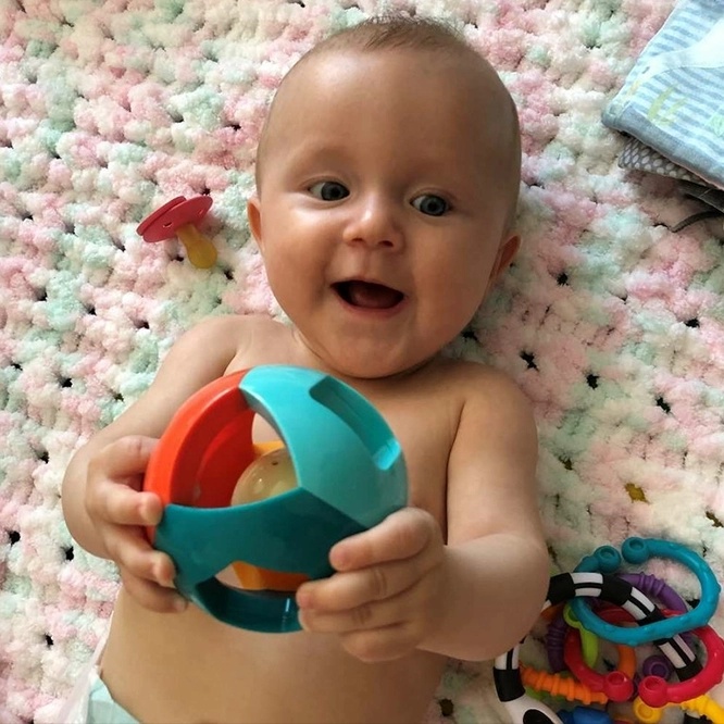 Красочная погремушка в виде шара Bayo изготовлена из качественных, безопасных и прочных материалов, которые легко моются. Благодаря своей веселой расцветке и форме он очень нравится детям, помогает развивать моторику, стимулирует развитие координации и чувств. Предназначен для детей с первых дней жизни.