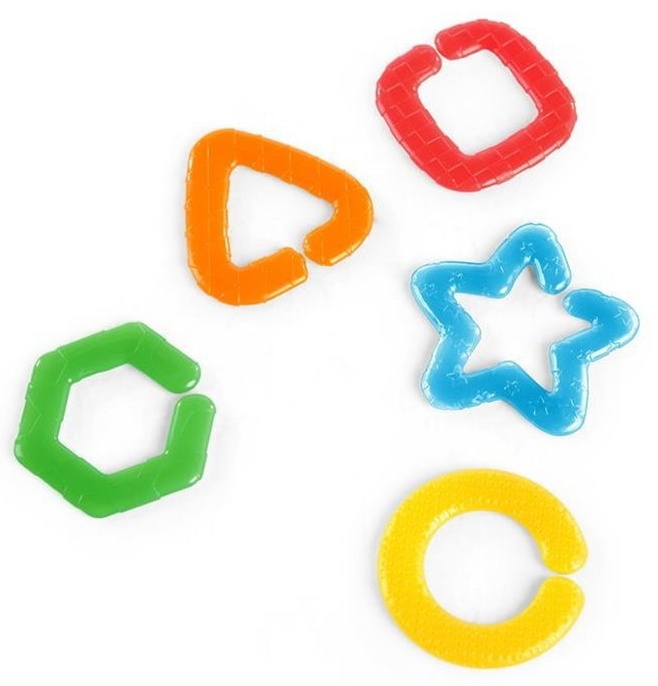 Даже время прорезывания зубов — это шанс открыть для себя что-то новое с игрушкой Shake, Rattle & Soothe Link Toy. Эта игрушка-кольцо оснащена съемными прорезывателями 5 классических форм и цветов. Ребенок может жевать прорезыватели для зубов без бисфенола-А, чтобы успокоить воспаленные десны, исследуя формы звезды, круга, треугольника, шестиугольника и квадрата. Держите все свои прорезыватели вместе с игрушкой-соединителем, которая имеет красочную погремушку для слуховой стимуляции и развлечения.