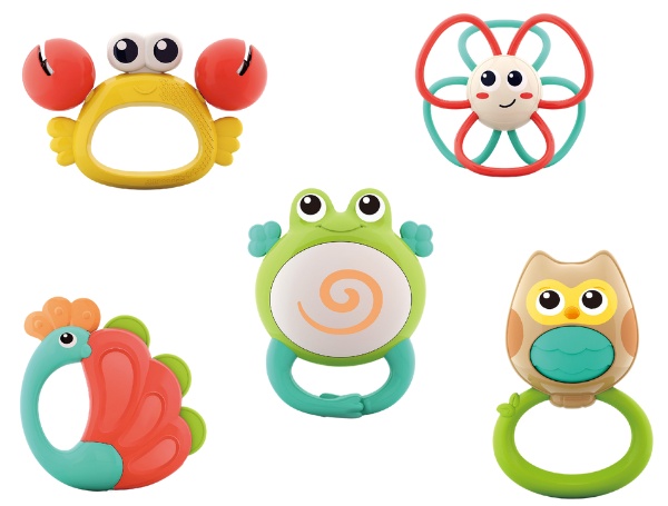 Разноцветные погремушки и игрушки-прорезыватели, разработанные специально для разных этапов развития вашего малыша. Этот набор включает 5 уникальных погремушек, каждая из которых имеет разнообразные ручки, формы и текстуры, чтобы способствовать развитию мелкой моторики и сенсорных навыков вашего ребенка.