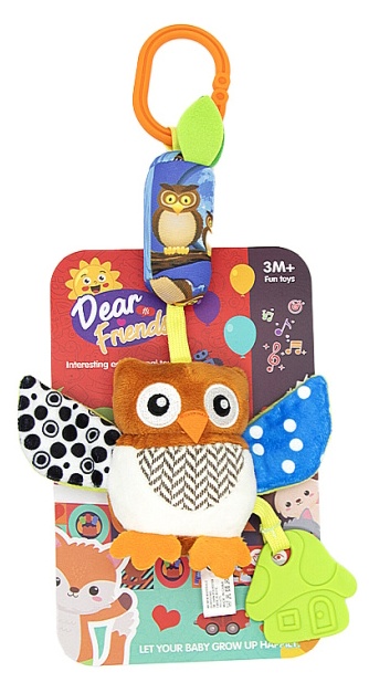 Эта игрушка в виде милой зверюшки, выполненная в ярких цветах из очень мягкого и гипоаллергенного материала, непременно приведёт ребёнка в восторг. Если её потрясти - весело загремят шарики, надежно спрятанные внутри. Благодаря креплению-клипсе игрушку удобно крепить к кроватке, коляске или дуге. Прорезыватель интересной формы из качественного безопасного материала пригодится малышу, когда у него будут резаться зубки.