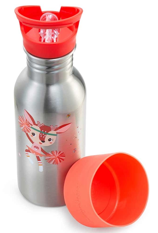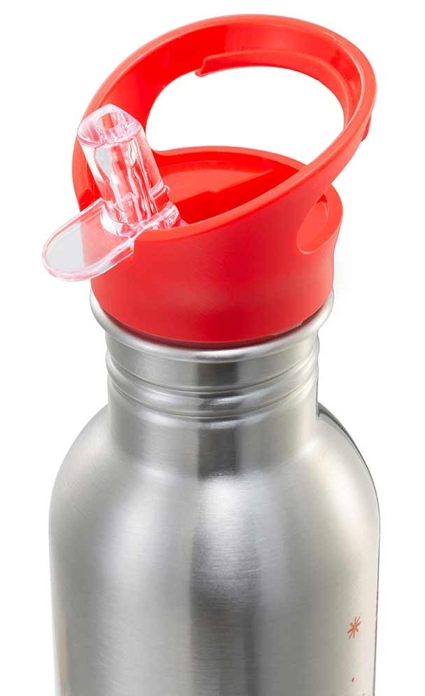 Изотермическая бутылка с трубочкой, идеально подходящая для ношения в школьной сумке. Нескользящее основание предотвращает скольжение бутылки при установке на ровную поверхность.
