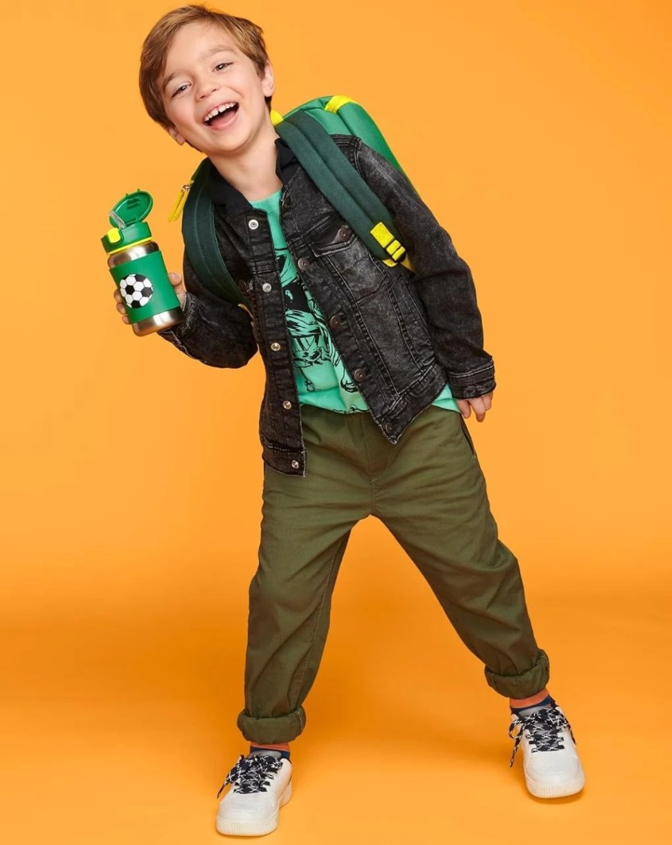 Бутылка для воды из нержавеющей стали с классным дизайном, подчеркивающим индивидуальность, помогает сохранять напитки прохладными в дороге. Откидная крышка сохраняет гибкую соломинку в чистоте, а нескользящий силиконовый чехол защищает маленькие ручки от холодных поверхностей.