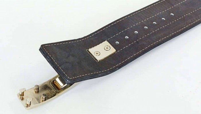 Этот пояс изготовлен из натуральной кожи, прочность и толщина которой гарантируют его максимальную устойчивость на разрыв. Ширина подобрана таким образом, чтобы максимально стабилизировать позвоночник, и в то же время не доставлять дискомфорт во время тренировок. Автоматическая рычажная пряжка-застёжка позволяет, надев пояс, затянуть его, тем самым обеспечив надёжную поддержку спине. С другой стороны, чтобы снять пояс не нужно прилагать усилий — достаточно лишь потянуть за рычаг.