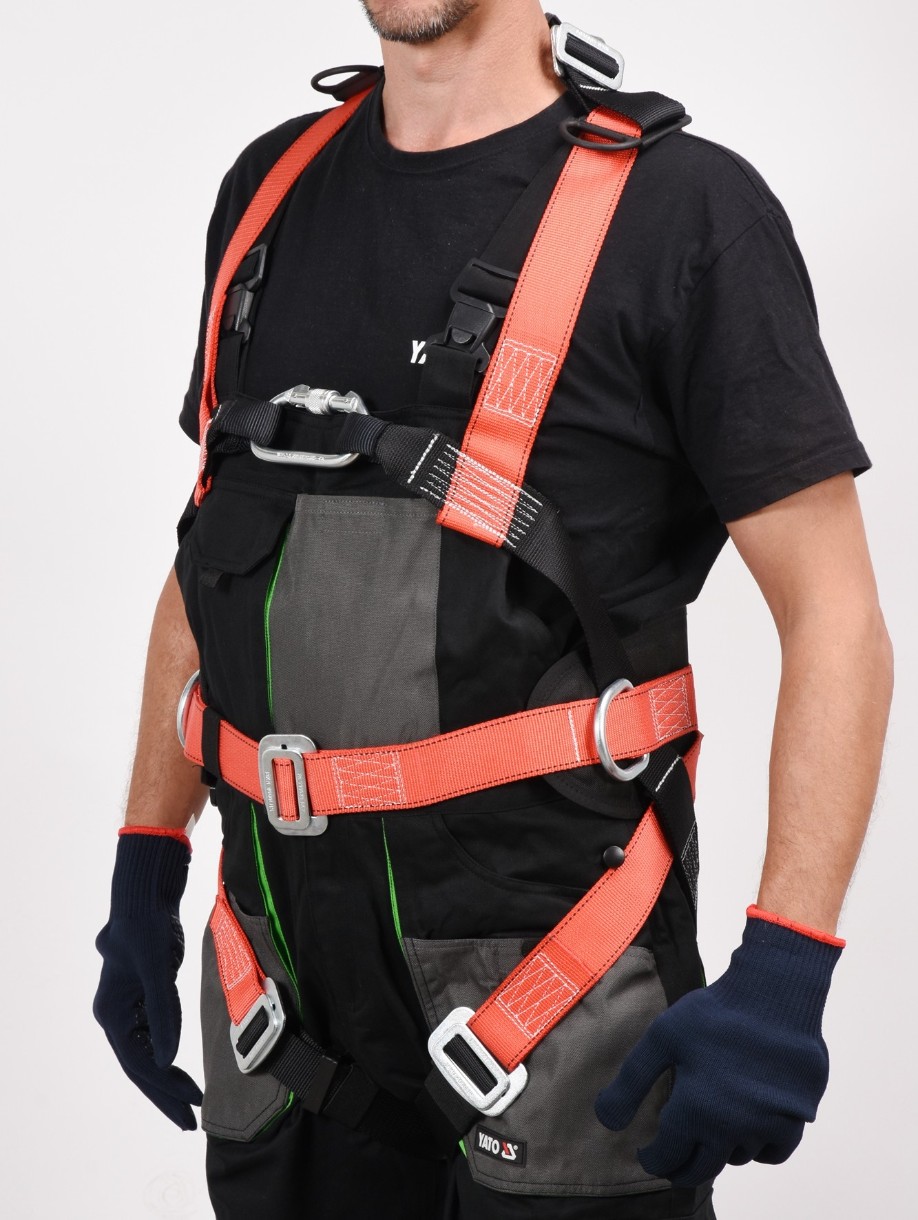 Ремень безопасности с поясным ремнем YT-74220 — элемент системы, предназначенный для защиты людей от падения с высоты. Правильно подобранная привязь должна плотно прилегать к туловищу, ремню и бедрам, чтобы вместе со специальной точкой крепления они могли равномерно распределять силы, действующие на тело во время падения.