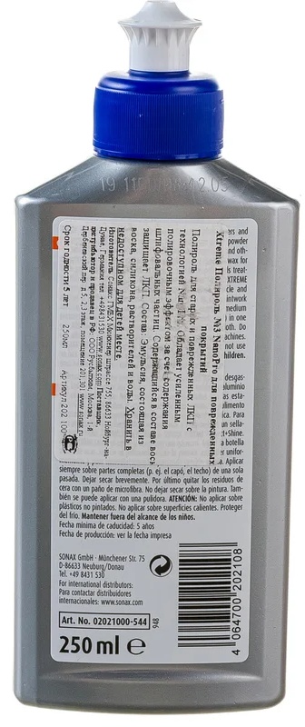 Способен глубже стандартных полиролей вьедаться в поверхность краски, восстанавливая ее естественный свет. Также может удалять мелкие и средние царапины на поверхности лако-красочного покрытия. Объем .Серая пелена исчезает и остается лаковая поверхность с глубоким блеском и оптимальным освежением цвета. Высококачественный воск защищает поверхность на многие недели. Кроме воска, автополироль содержит защитные элементы и защищает лако-красочное покрытие кузова вашего автомобиля. №3 SONAX сглаживает не только мелкие царапины, но и способен также затереть и сделать невидимыми более глубокие царапины на поверхности вашего автомобиля. Эффект максимального блеска поверхности и водоотталкивающее покрытие работает в течение нескольких месяцев.