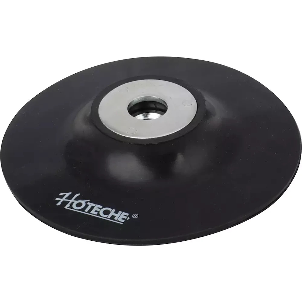 Диск резиновый с липучкой HOTECHE 560113 подходит для работы со шлифмашинами или электродрелью при установке переходника в качестве опорной тарелки для шлифовальных кругов. Абразивные круги крепятся с помощью липучки. Насадка изготовлена из мягкой резины, что позволяет обрабатывать изогнутые поверхности.