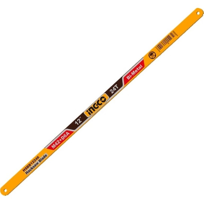 Полотно ножовочное по металлу INGCO HSBB12246 INDUSTRIAL 24T 300 мм предназначено для использования совместно с ножовками по металлу. Материал ножовочного полотна - инструментальная сталь D6A+М42 Bi-Metall.