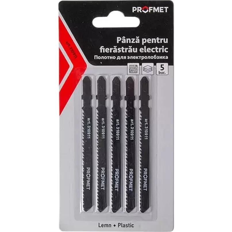 Набор из 5 полотен для электролобзика PROFMET с Т-образным соединением и простой кулачковой тягой специально разработан для точной и чистой резки покрытой древесины, ламината и паркета. Рекомендуемая толщина материала составляет 2-20 мм, что обеспечивает оптимальную производительность и долгий срок службы.